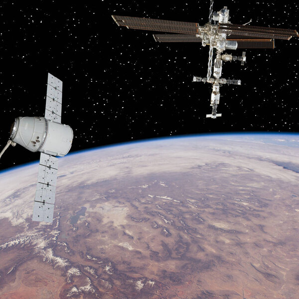 665858198 Earth and spacecrafts. Outer space. The elements of this image furnished by NASA