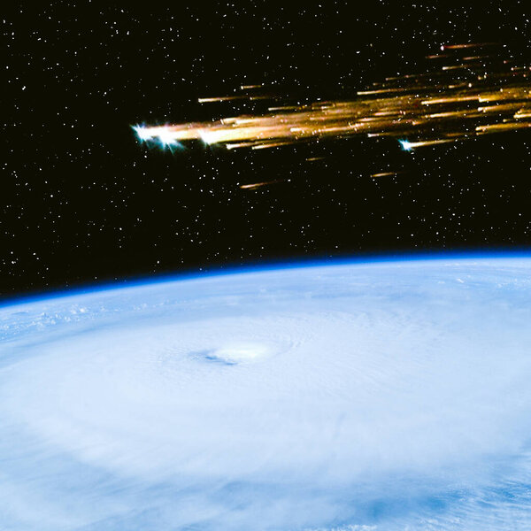 664764114 Comet over the earth. Meteor rain. The elements of this image furnished by NASA