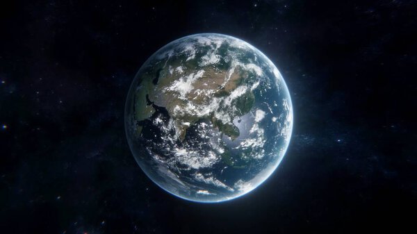667292192 Earth in space. Blue planet wallpaper facing Asia. 3D illustration of Globe on star field background with starry sky in interstellar space. Elements of this image furnished by NASA.