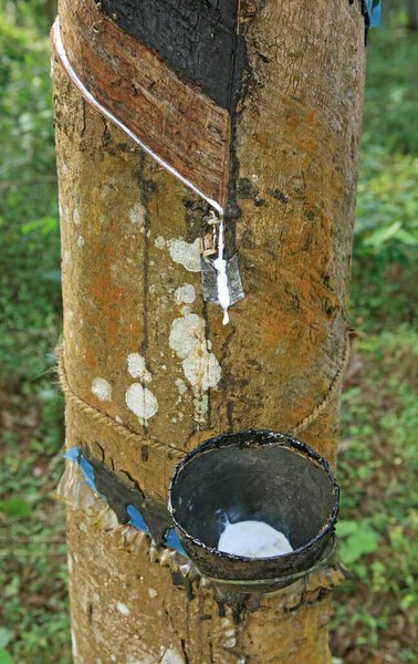 708145636 Raw rubber ficus elastica collected from rubber plant, Kottayam, Kerala, India
