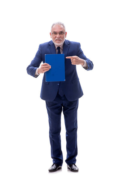 173506834 Happy old man looking at camera and smiling. Healthcare. Retirement. Isolated over white.