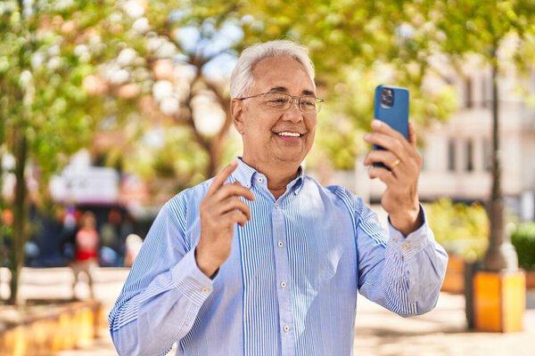 710166890 A mature hispanic man in glasses focusing intently at his office workplace.