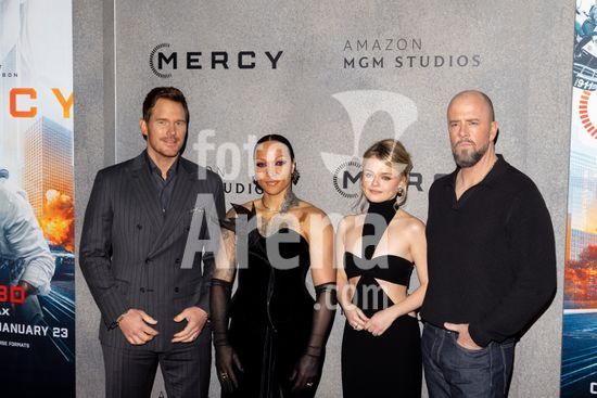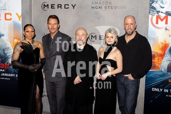 2620J04_BX036 Kali Reis, Chris Pratt, Timur Bekmambetov, Kylie Rogers, Chris Sullivan at arrivals for MERCY Premiere, AMC Lincoln Square, New York, NY, January 20, 2026. Photo By: Ryan Billings / Everett Collection/ Fotoarena