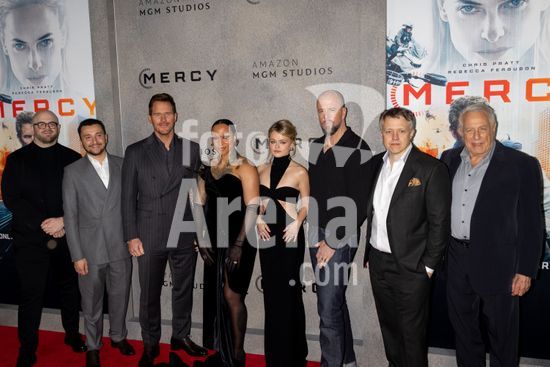 2620J04_BX035 Charles Roven, Kali Reis, Chris Pratt, Timur Bekmambetov, Kylie Rogers, Chris Sullivan, Robert Amidon, Majd Nassif at arrivals for MERCY Premiere, AMC Lincoln Square, New York, NY, January 20, 2026. Photo By: Ryan Billings / Everett Collection/ Fotoarena