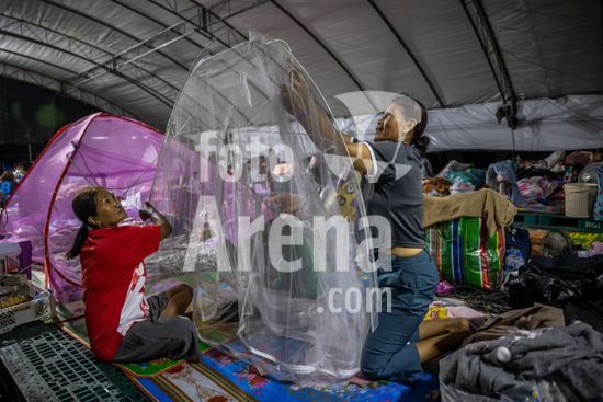 ny101225122812 Evacuees set up mosquito nets at an evacuation shelter at the Chang International Circuit race course in Buriram, Thailand, where thousands of people who live near the border with Cambodia had taken refuge, on Wednesday, Dec. 10, 2025. Fighting between the two countries has resumed, leaving at least 12 dead and displacing hundreds of thousands, with land mines along the disputed border a key issue. (Lauren DeCicca/The New York Times/Fotoarena)