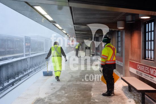 ny230226110611 Workers clear snow from the platform at a subway station in Boston on Monday morning, Feb. 23, 2026. The powerful winter storm pummeling a vast swath of the Eastern Seaboard intensified on Monday morning, dumping snow at a furious rate and strangling major metropolitan areas at the dawn of the workweek. (Lucy Lu/The New York Times/Fotoarena)
