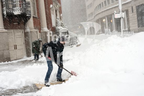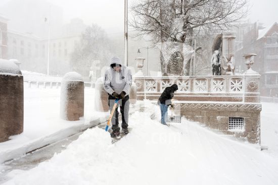 ny230226110812 Workers clear snow from a sidewalk outside Park Street Church in Boston on Monday morning, Feb. 23, 2026. The powerful winter storm pummeling a vast swath of the Eastern Seaboard intensified on Monday morning, dumping snow at a furious rate and strangling major metropolitan areas at the dawn of the workweek. (Lucy Lu/The New York Times/Fotoarena)