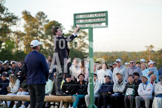 ny090426102011 The names of golfers Gary Player, Jack Nicklaus and Tom Watson are placed before the ceremonial first tee at the start of the first round of the Masters Tournament at Augusta National Golf Club in Augusta, Ga., Thursday, April 9, 2026. (Doug Mills/The New York Times/Fotoarena)