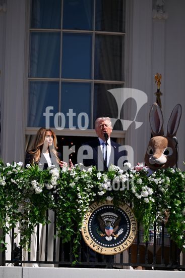 ny060426121311 President Donald Trump speaks alongside first lady Melania Trump during the White House Easter Egg Roll event on the South Lawn of the White House in Washington, on Monday, April 6, 2026. (Kenny Holston/The New York Times/Fotoarena)