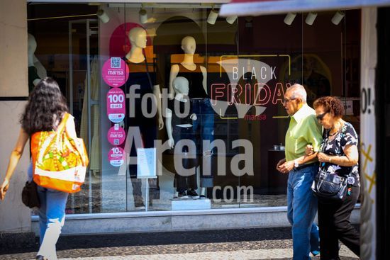 2849686 Com oferta de promoções em diversos setores, a Black Friday acontece nesta sexta-feira (28), onde consumidores podem adquirir produtos com descontos de até 80% de desconto. Especialistas recomendam atenção aos preços e comparação antes da compra. Na foto, o conhecido calçadão de Osasco na Grande São Paulo, o principal centro comercial da cidade, tem movimento fraco.