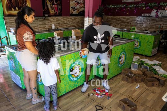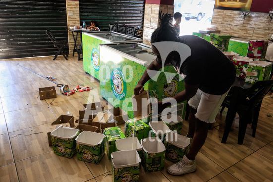 990_05_9-US-NYC-St_26HR New York, New York: 1927 Cortlandt Street, otherwise known as 'Radio Alley', where hundreds of radio shops compete with each other in demonstrating the loudest and latest speakers in the world.