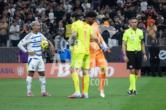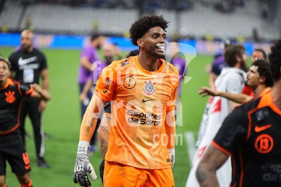 2858982 Matheus Bidu (Corinthians) e Cássio (Cruzeiro) durante a partida entre Corinthians e Cruzeiro, jogo de volta das semifinais da Copa do Brasil realizado na noite deste domingo (14) na Neo Química Arena em São Paulo, SP.