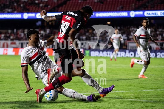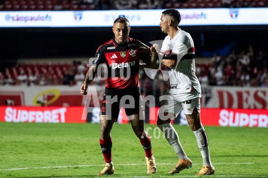 2875790 Danielzinho do São Paulo e S. Lino do Flamengo durante partida entre São Paulo FC x Flamengo, válida pela primeira rodada do Campeonato Brasileiro de Futebol 2026, nesta quarta feira (28), no Morumbis, SP.