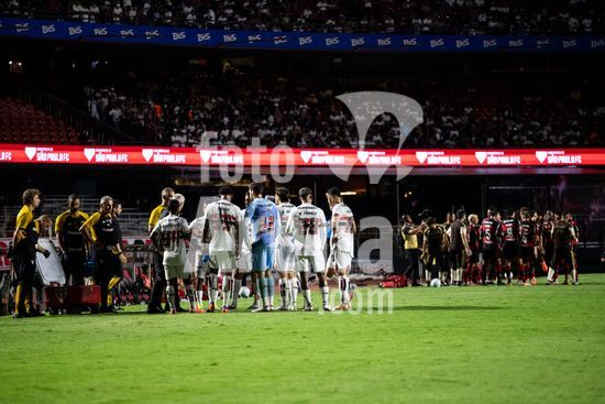 2875791 Pausa para hidratação durante partida entre São Paulo FC x Flamengo, válida pela primeira rodada do Campeonato Brasileiro de Futebol 2026, nesta quarta feira (28), no Morumbis, SP.