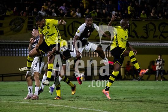 2886845 Lance aéreo durante a partida entre São Bernardo e Corinthians, válida pela 8ª e última rodada da primeira fase do Paulistão, realizada na noite deste domingo (15) no Estádio Primeiro de Maio em São Bernardo do Campo, SP.