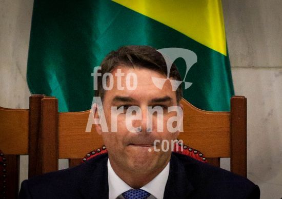 2895454 A Assembléia Legislatiiva de São Paulo, atravéz do presidente da casa, André do Prado (PL), presta homenagem de Outorga do Colar do Honra ao Mérito a Valdemar Costa Neto, presidente do PL nesta sexta-feira (27). A solenidade conta com as presenças do pré-candidato à Presidencia da República, o senador Flávio Bolsonaro (PL), o governador do Estado, Tarcísio de Freitas (Republicanos) e do prefeito da cidade, Ricardo Nunes (PMDB), entre outras autoridades. Na foto, o senador Flávio Bolsonaro durante solenidade.