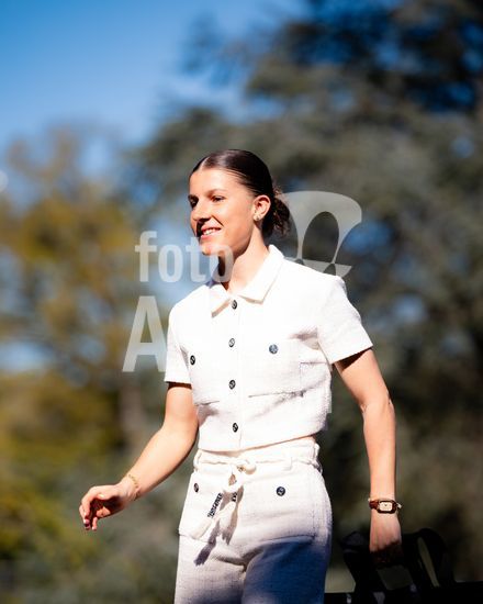 2921043 PARIS, FRANCA, 8 DE ABRIL: Pauline Peyraud-Magnin, da Franca, durante a chegada das jogadoras da selecao francesa feminina ao INF Clairefontaine em 8 de abril de 2026, em Clairefontaine-en-Yvelines, Franca. (Pauline Figuet/SPP)