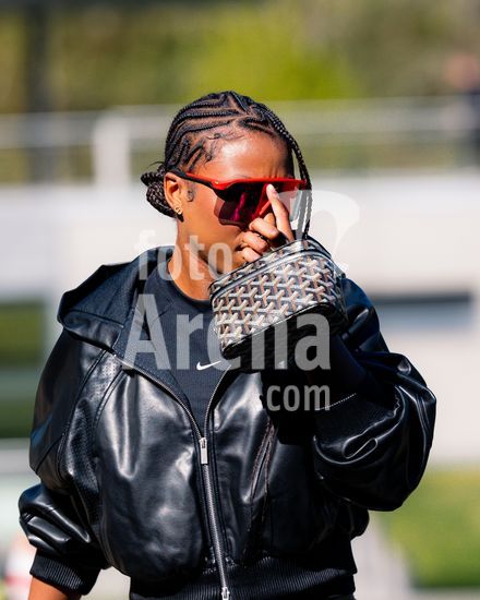 2921044 PARIS, FRANCA, 8 DE ABRIL: Melwenn N'Dongala, da Franca, durante a chegada das jogadoras da selecao francesa feminina ao INF Clairefontaine em 8 de abril de 2026, em Clairefontaine-en-Yvelines, Franca. (Pauline Figuet/SPP)
