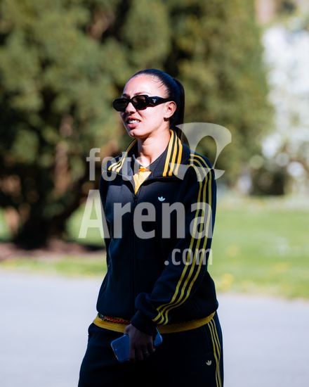 2921023 PARIS, FRANCA, 8 DE ABRIL: Melwenn N'Dongala, da Franca, durante a chegada das jogadoras da selecao francesa feminina ao INF Clairefontaine em 8 de abril de 2026, em Clairefontaine-en-Yvelines, Franca. (Pauline Figuet/SPP)