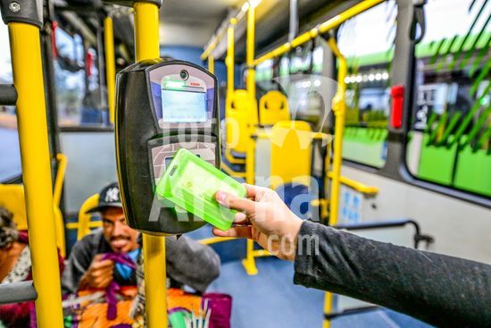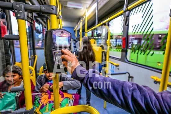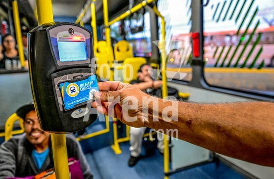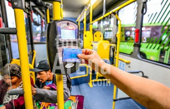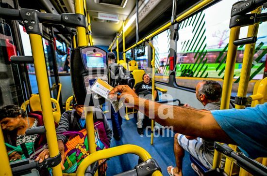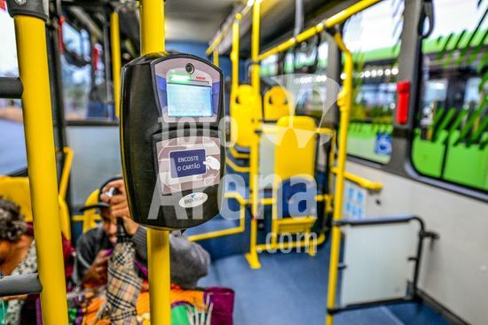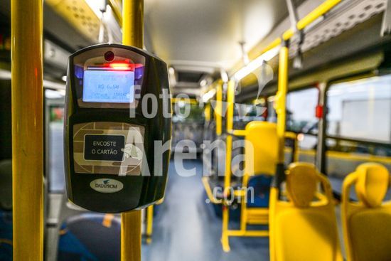 2921460 Catraca eletronica em onibus do transporte publico que funciona com o pagamento em cartão .