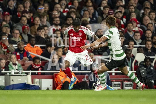 2925680 LONDRES, INGLATERRA - 15 DE ABRIL: Geny Catamo, do Sporting CP, controla a bola durante uma partida da Liga dos Campeoes da UEFA 2025-26 entre Arsenal e Sporting CP no Emirates Stadium, em 15 de abril de 2026, em Londres, Inglaterra. (Pedro Loureiro/SPP)
