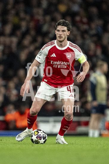 2925684 LONDRES, INGLATERRA - 15 DE ABRIL: Declan Rice, do Arsenal, controla a bola durante uma partida da Liga dos Campeoes da UEFA 2025-26 entre Arsenal e Sporting CP no Emirates Stadium, em 15 de abril de 2026, em Londres, Inglaterra. (Pedro Loureiro/SPP)