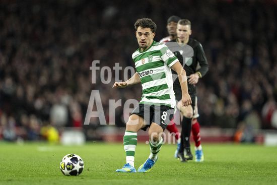 2925685 LONDRES, INGLATERRA - 15 DE ABRIL: Pedro Goncalves, do Sporting CP, passa a bola durante uma partida da Liga dos Campeoes da UEFA 2025-26 entre Arsenal e Sporting CP no Emirates Stadium, em 15 de abril de 2026, em Londres, Inglaterra. (Pedro Loureiro/SPP)