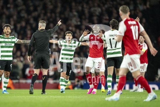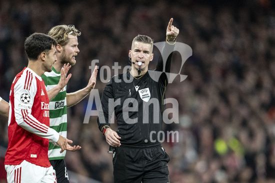 2925672 LONDRES, INGLATERRA - 15 DE ABRIL: O arbitro Francois Letexier gesticula durante uma partida da Liga dos Campeoes da UEFA 2025-26 entre Arsenal e Sporting CP no Emirates Stadium em 15 de abril de 2026 em Londres, Inglaterra. (Pedro Loureiro/SPP)