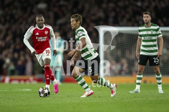 2925691 LONDRES, INGLATERRA - 15 DE ABRIL: Hidemasa Morita, do Sporting CP, controla a bola durante uma partida da Liga dos Campeoes da UEFA 2025-26 entre Arsenal e Sporting CP no Emirates Stadium, em 15 de abril de 2026, em Londres, Inglaterra. (Pedro Loureiro/SPP)