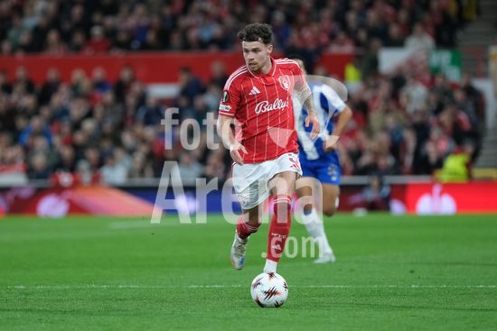 2926346 NOTTINGHAM, INGLATERRA - 16 DE ABRIL: Neco Williams, do Nottingham Forest, com a bola durante a partida de futebol das quartas de final da Liga Europa da UEFA entre Nottingham Forest e FC Porto, no City Ground, em 16 de abril de 2026, em Nottingham, Inglaterra. (Paul Bonser / Sports Press Photo / SPP)