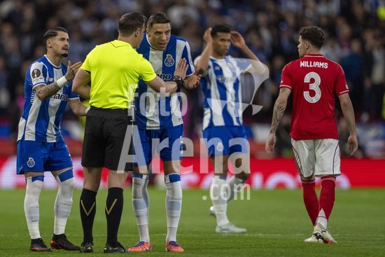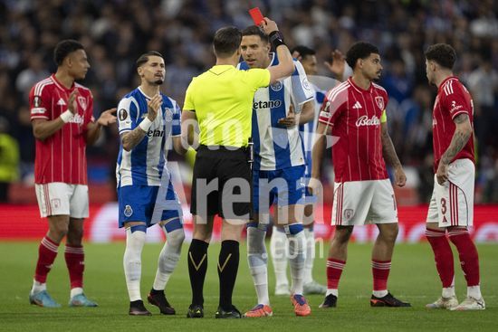 2926358 NOTTINGHAM, INGLATERRA - 16 DE ABRIL: O arbitro Danny Makkelie conversa com Jan Bednarek, do Porto, apos lhe mostrar o cartao vermelho durante a partida da Liga Europa da UEFA entre Nottingham Forest e Porto, no City Ground, em 16 de abril de 2026, em Nottingham, Inglaterra. (Foto de Pedro Loureiro/Sports Press Photo) (Pedro Loureiro/Sports Press Photo / SPP)