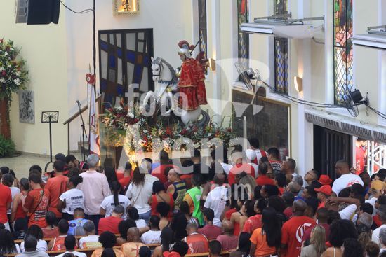2930272 Milhares de fiéis prestam homenagem ao Santo Guerreiro durante Dia de São Jorge na Paróquia matriz de São Jorge no bairro de Quintino na zona norte da cidade do Rio de Janeiro, RJ.