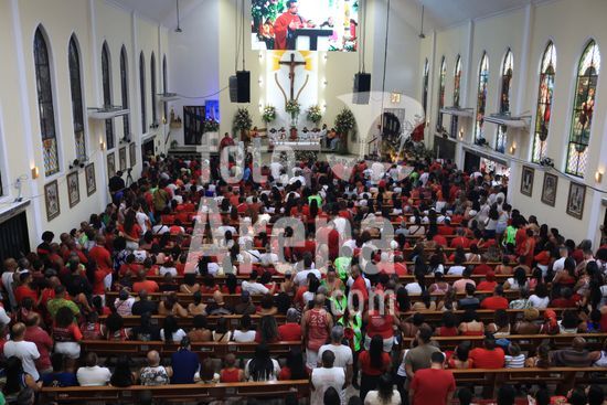 2930268 Milhares de fiéis prestam homenagem ao Santo Guerreiro durante Dia de São Jorge na Paróquia matriz de São Jorge no bairro de Quintino na zona norte da cidade do Rio de Janeiro, RJ.