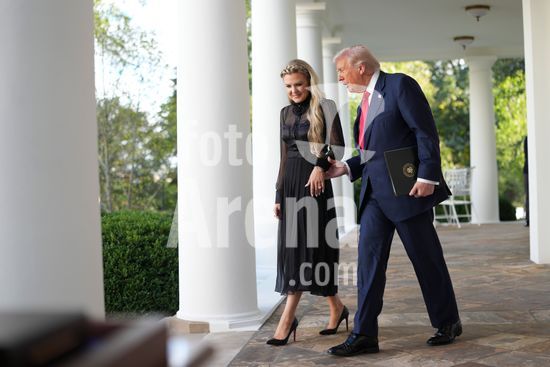 ny141025175512 President Donald Trump walks with Erika Kirk to a ceremony where he would present the Presidential Medal of Freedom for Charlie Kirk in the Rose Garden of the White House in Washington, on Tuesday, Oct. 14, 2025. President Donald Trump will award America?s highest civilian honor to the assassinated right-wing activist at the event. (Doug Mills/The New York Times/Fotoarena)