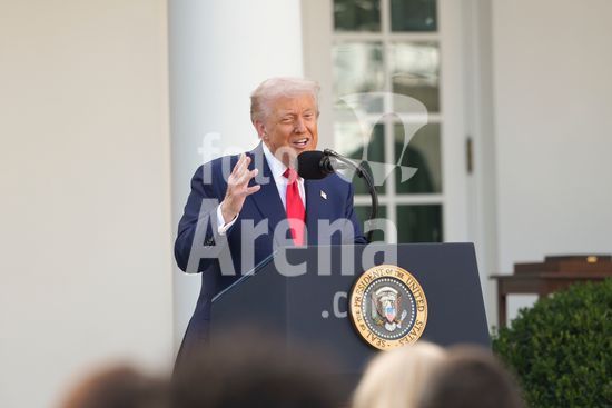 ny141025175811 President Donald Trump speaks at a ceremony to present the Presidential Medal of Freedom for Charlie Kirk in the Rose Garden of the White House in Washington, on Tuesday, Oct. 14, 2025. President Donald Trump is awarding America?s highest civilian honor to the assassinated right-wing activist at the event. (Doug Mills/The New York Times/Fotoarena)