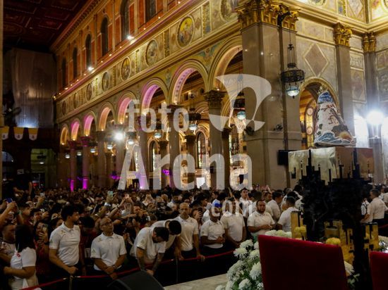 2820682 O manto da Imagem Peregrina, símbolo do Círio de Nazaré, foi apresentado durante cerimônia realizada após a missa das 18h na Basílica Santuário de Nazaré em Belém no Pará. A celebração foi presidida pelo arcebispo metropolitano Dom Júlio Endi Akamine.