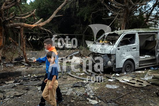 ny010426094512 Local youths walk past the site of an airstrike in Beirut that killed at least five overnight on Wednesday, April 1, 2026. There were more Israeli strikes across southern Lebanon on Wednesday, a day after Israel said it plans to occupy and control a large swath of the region and demolish entire towns. LebanonÕs national news agency reported airstrikes in several towns. (Diego Ibarra S?nchez/The New York Times/Fotoarena)