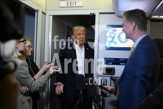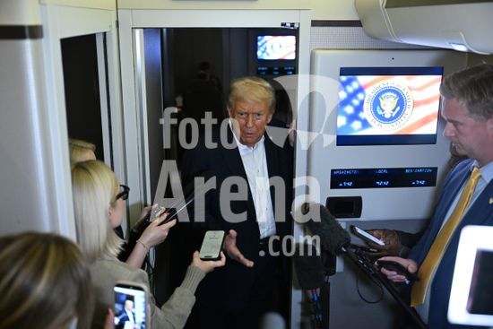ny131025205311 President Donald takes questions from the press on board Air Force One, on Tuesday, Oct. 14, 2025. Hamas freed the 20 hostages and Israel released some 2,000 Palestinian prisoners as part of a cease-fire. President Trump, in Israel, proclaimed an ?end? to the war, but Israel and Hamas have not agreed on next steps in Gaza. (Kenny Holston/The New York Times/Fotoarena)