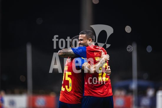 2827293 Futebol - Bahia X Gremio - Jogo de ida valido pela 29a rodada do Campeonato Brasileiro 2025. Realizado na Arena Fonte Nova, nesse Domingo (19), na foto Willian Jose (12) e Iago Borduchi (25), do Bahia, autores dos dois gols da equipe no primeiro tempo.