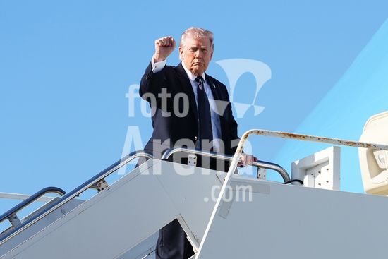 ny010326183211 President Donald Trump holds up a fist as he boards Air Force One at Palm Beach International Airport in West Palm Beach, Fla., on Sunday, March 1, 2026. A day after a joint U.S.-Israeli military operation unleashed a bombing wave across Iran and killed IranÕs supreme leader, the attacks intensified on Sunday by land and sea. (Eric Lee/The New York Times/Fotoarena)