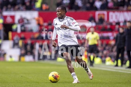2877661 MANCHESTER, INGLATERRA - 1 DE FEVEREIRO: Samuel Chukwueze, do Fulham, controla a bola durante uma partida da Premier League de 2026 entre Manchester United e Fulham, no Old Trafford, em 1º de fevereiro de 2026, em Manchester, Inglaterra. (Richard Callis/Fotoarena)