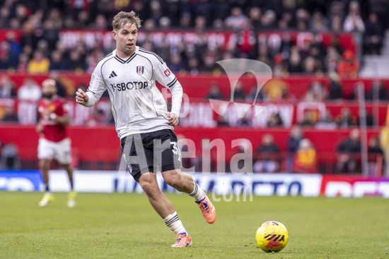 2877664 MANCHESTER, INGLATERRA - 1 DE FEVEREIRO: Emile Smith Rowe, do Fulham, passa a bola durante uma partida da Premier League de 2026 entre Manchester United e Fulham, no Old Trafford, em 1º de fevereiro de 2026, em Manchester, Inglaterra. ((Richard Callis/Fotoarena)