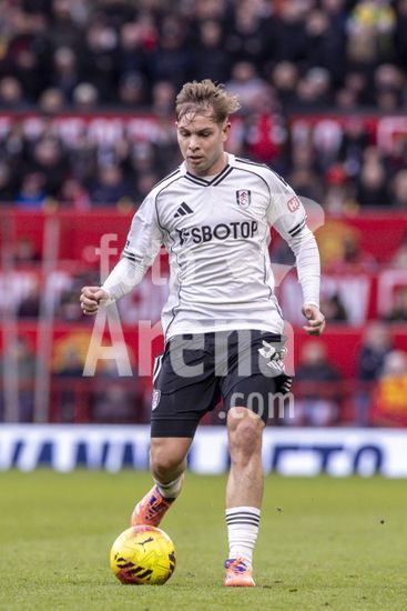 2877662 MANCHESTER, INGLATERRA - 1 DE FEVEREIRO: Emile Smith Rowe, do Fulham, controla a bola durante uma partida da Premier League de 2026 entre Manchester United e Fulham, no Old Trafford, em 1º de fevereiro de 2026, em Manchester, Inglaterra. ((Richard Callis/Fotoarena)