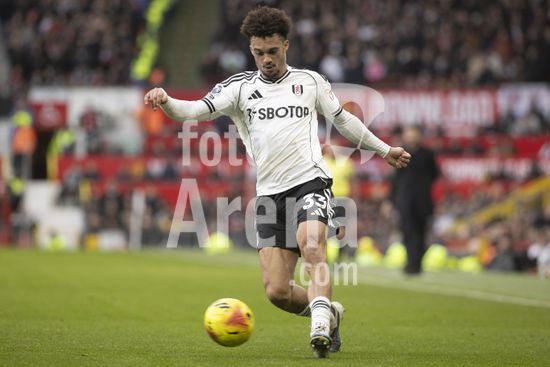 2877665 MANCHESTER, INGLATERRA - 1 DE FEVEREIRO: Antonee Robinson, do Fulham, passa a bola durante uma partida da Premier League de 2026 entre Manchester United e Fulham, no Old Trafford, em 1º de fevereiro de 2026, em Manchester, Inglaterra. (Richard Callis/Fotoarena)