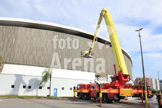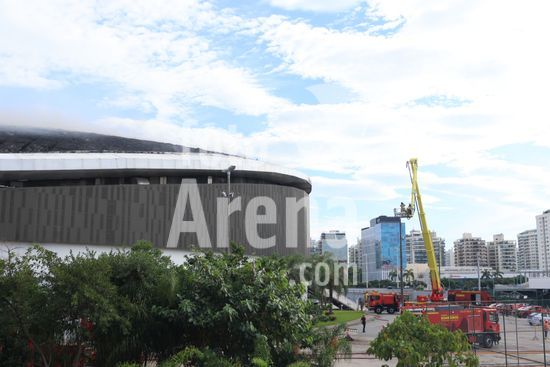 2920822 Incêndio atinge cobertura do Velodromo no bairro da Barra da Tijuca na cidade do Rio de Janeiro, RJ.