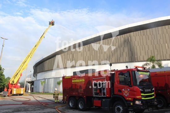 2920810 Incêndio atinge cobertura do Velodromo no bairro da Barra da Tijuca na cidade do Rio de Janeiro, RJ.