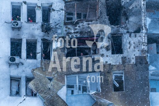 ny090126125412 People inspect a residential building damaged by a Russian strike in the Pozniaky neighborhood of Kyiv, on Friday, Jan. 9, 2026. Strikes in Kyiv hit several high-rise apartment buildings and also critical infrastructure, knocking out water supply in some places and heat to half of the city?s apartment buildings, according to the mayor, Vitali Klitschko. (Brendan Hoffman/The New York Times/Fotoarena)