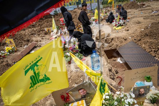 ny240426132812 Fatima al Masri and her family lay flowers at the grave of her husband, Hussein Ali Atwi, a civil defense worker killed in an attack on the civil defense headquarters, near a grave that has been exhumed for reburial at a transit graveyard in Tyre, Lebanon, on Friday, April 24, 2026. He was temporarily buried in the transit mass graveyard where bodies were placed during the war until they can be reburied in villages in the region. (David Guttenfelder/The New York Times/Fotoarena)