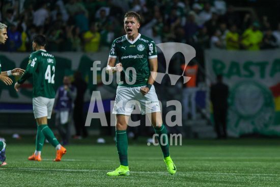 2833138 Bruno Fuchs comemora gol durante partida entre Palmeiras e LDU válida pelo jogo de volta da semi final da Conmebol Libertadores 2025 realizado no Allianz Parque na noite desta quinta (30).