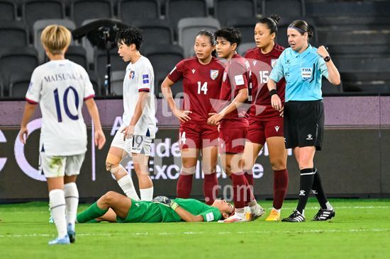 2902610 SYDNEY, AUSTRALIA - 10 DE MARCO: A goleira Elangbam Panthoi Chanu 1 India) lesionada durante a partida da Copa Asiatica Feminina da AFC Australia 2026 entre India e Taipei Chines no Estadio Western Sydney em 10 de marco de 2026 em Sydney, Australia. (Keith McInnes Sports Press Photo / SPP)